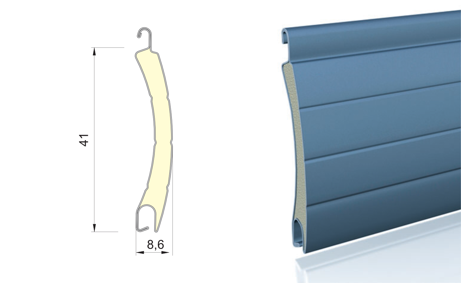 Isolierte Aluminiumlamellen sind der wichtigste Teil von Rollläden, denn sie schützen den Innenraum vor Wärmeverlust, Lärm und Dieben. Das schlichte Design macht es einfach, sie mit jedem Gebäudetyp zu kombinieren. Der Gesamteindruck wird dann durch die Wahl des richtigen Designs verstärkt. Sie können zwischen Lamellenbreiten von 2 800 mm bis 3 800 mm wählen.